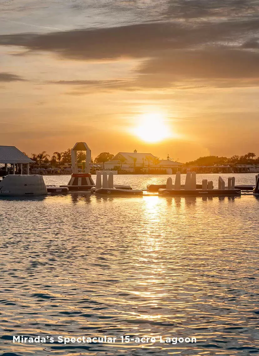 At the heart of Mirada sits a unique 15+ acre man-made lagoon by MetroLagoons that connects Mirada residents to an amazing beach lifestyle right in their own community: swimming, kayaking, paddleboarding and playing in the sand is all right here. But in addition to Tampa’s finest homes, there’s even more at Mirada: a resort-style pool, dog parks, tennis and pickleball courts, spacious sidewalks, walking and biking trails, bocce ball courts*, an event lawn and the lagoon amenities. From high-speed action to leisurely strolling or floating, at Mirada in Pasco County you can live life at its fullest.